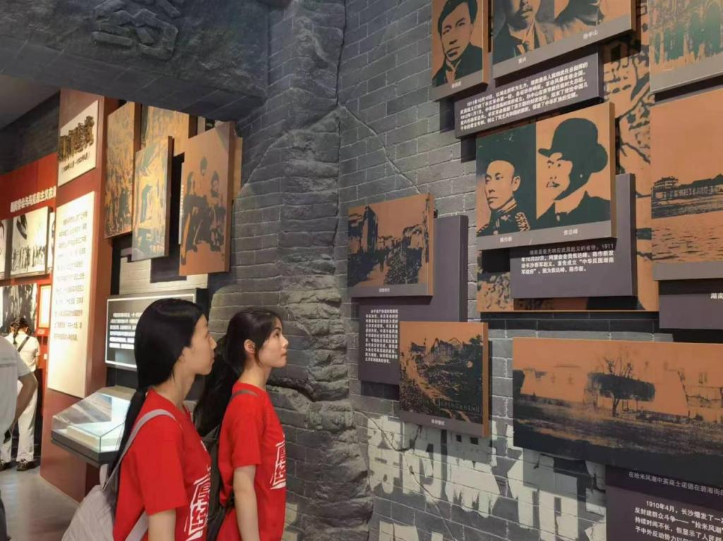 在青年毛泽东纪念馆,队员们沿着“大礼堂——八班教室——第八班寝室——水井——展厅”这一路线,重走了伟大领袖毛主席学生时代的路程,更加深刻地体会到毛主席心路历程的变化和革命思想的形成与发展;在湖南党史陈列馆,队员们通过文字、照片、历史信件、场景模拟、3D投影等多种形式深入学习了560多个湖南党史事件和480多位党史人物,感受湖南人民在党的领导下的奋斗历程。一件件跨越时空的珍贵实物、一张张承载历史记忆的老照片,一段段弥足珍贵的文字,把队员们带到了或是战火纷飞的革命岁月、或是艰苦奋斗的建设征程、亦或是翻天覆地的改革时代。奋楫扬帆正当时,青春热血谱华章,以党史之光照亮奋进之路,队员们将满腔热血投入到接下来的实践中。