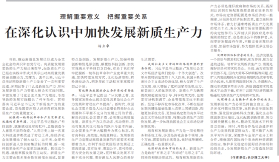 近日,我院杨立卓副教授署名文章《理解重要意义把握重要关系在深化认识中加快发展新质生产力》在《人民日报》2024年6月28日第9版理论版发表。