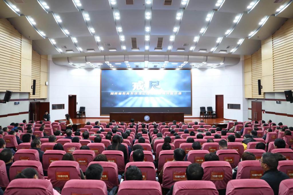 大会组织与会领导干部观看了警示教育片《戒尺》,进一步引导全校党员领导干部以案为戒,自警自省,筑牢拒腐防变防线,永葆忠诚干净担当的政治本色。