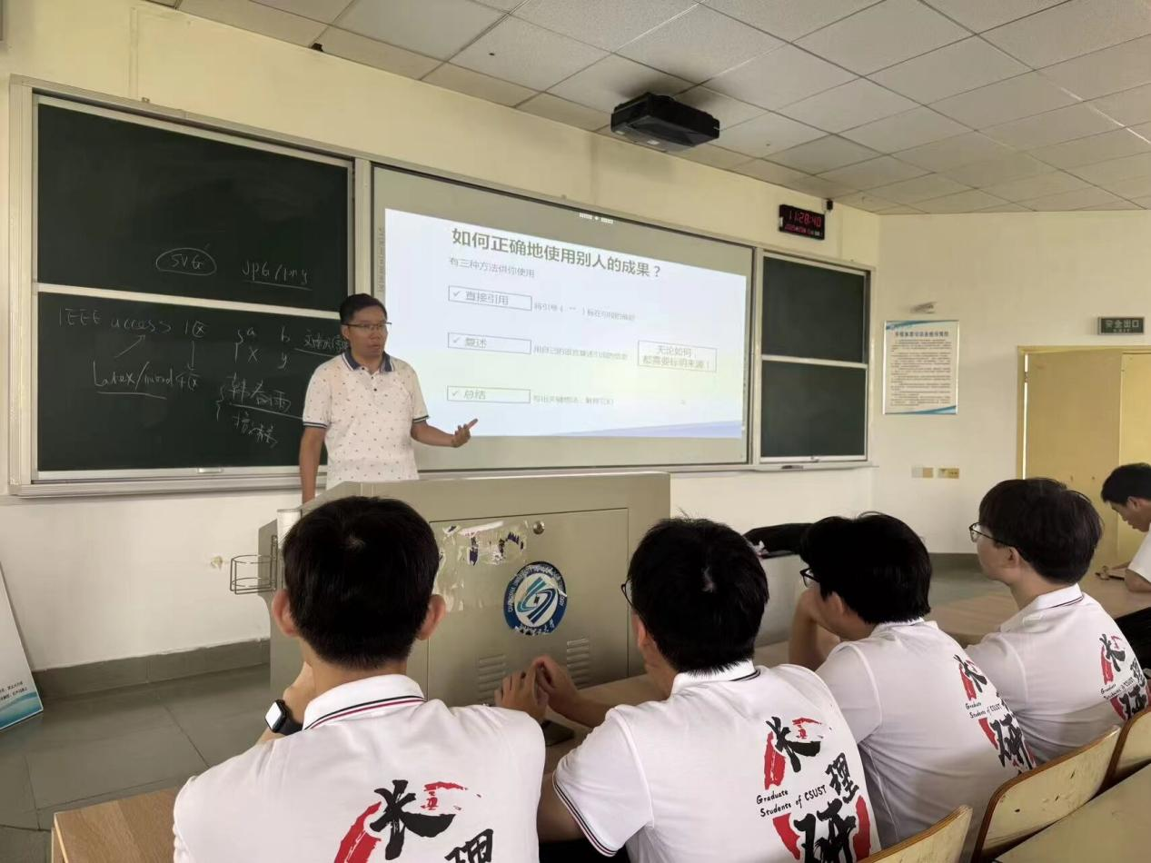 讲座伊始,廖年冬博士从科研诚信的现实意义出发,结合近年来国内外典型的学术不端案例,深入分析了学术失信行为对研究者学术生涯及科学共同体信誉造成的长期负面影响。随后,他系统阐述了科学道德的基本内涵与学术规范的具体要求,结合多年学术实践与评审经验,详细介绍了抄袭、剽窃、数据篡改、论文买卖、一稿多投、不当署名和自我抄袭等常见学术不端行为的形式与认定标准,并深入解读其背后动机与相应惩处机制。这些内容让在座的研究生新生对科研诚信有了更为清晰和全面的认识,也为他们今后的科研工作划清了红线、指明了方向。此外,他还结合学术论文写作与发表过程中的实际问题,介绍了图像处理、数据呈现、引用标注等环节的规范操作方法。最后,廖博士鼓励同学们在科研起步阶段就养成良好的学术习惯,在学术上积极与导师沟通,自觉遵守学术纪律,加强自我约束。