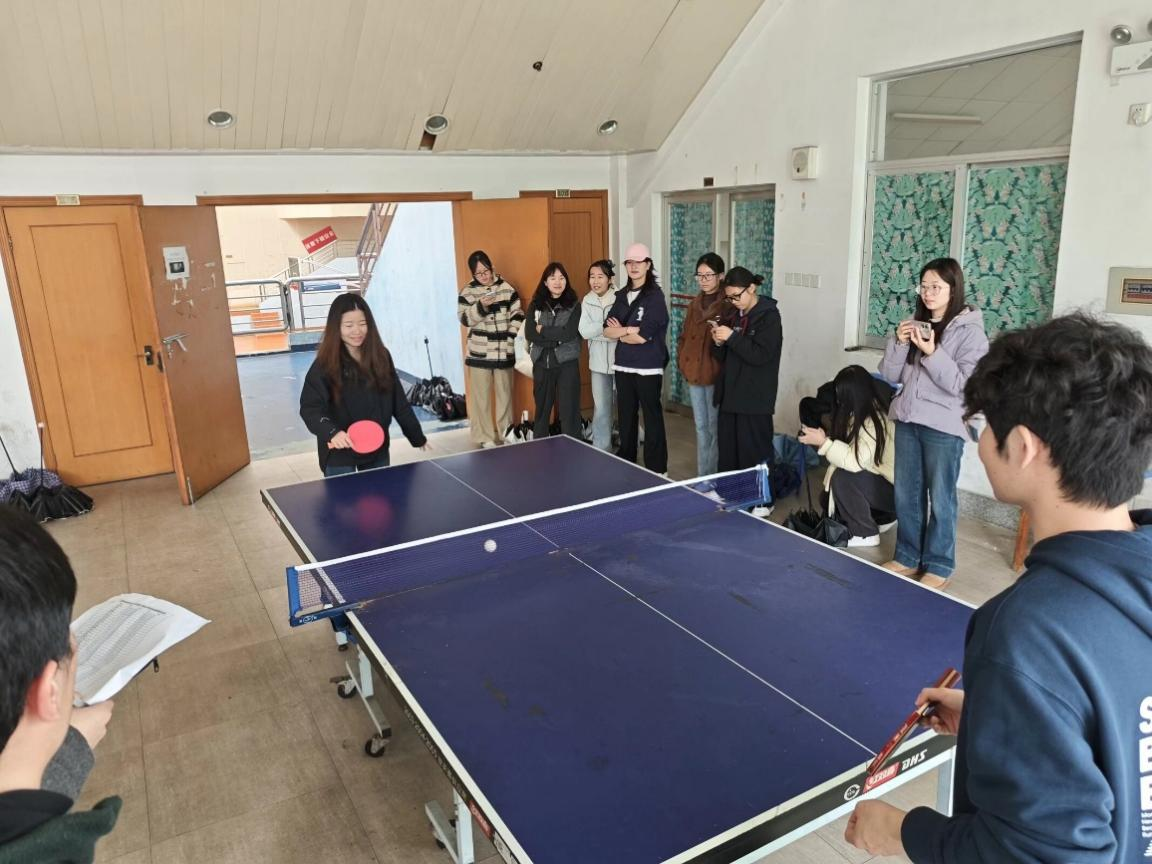 作为承办单位之一,学院在赛前积极策划,通过“循环积分+末位挑战赛”等兼具竞技性与公平性的赛制,充分调动师生参与热情。男子组选手风格多样,既有发球抢攻的果敢,也有削球相持的韧劲;女子组选手则在细腻控球与稳定对拉中彰显“巾帼不让须眉”的风采。场边观众热情助威,赛场内外洋溢着运动的活力与学院的凝聚力。