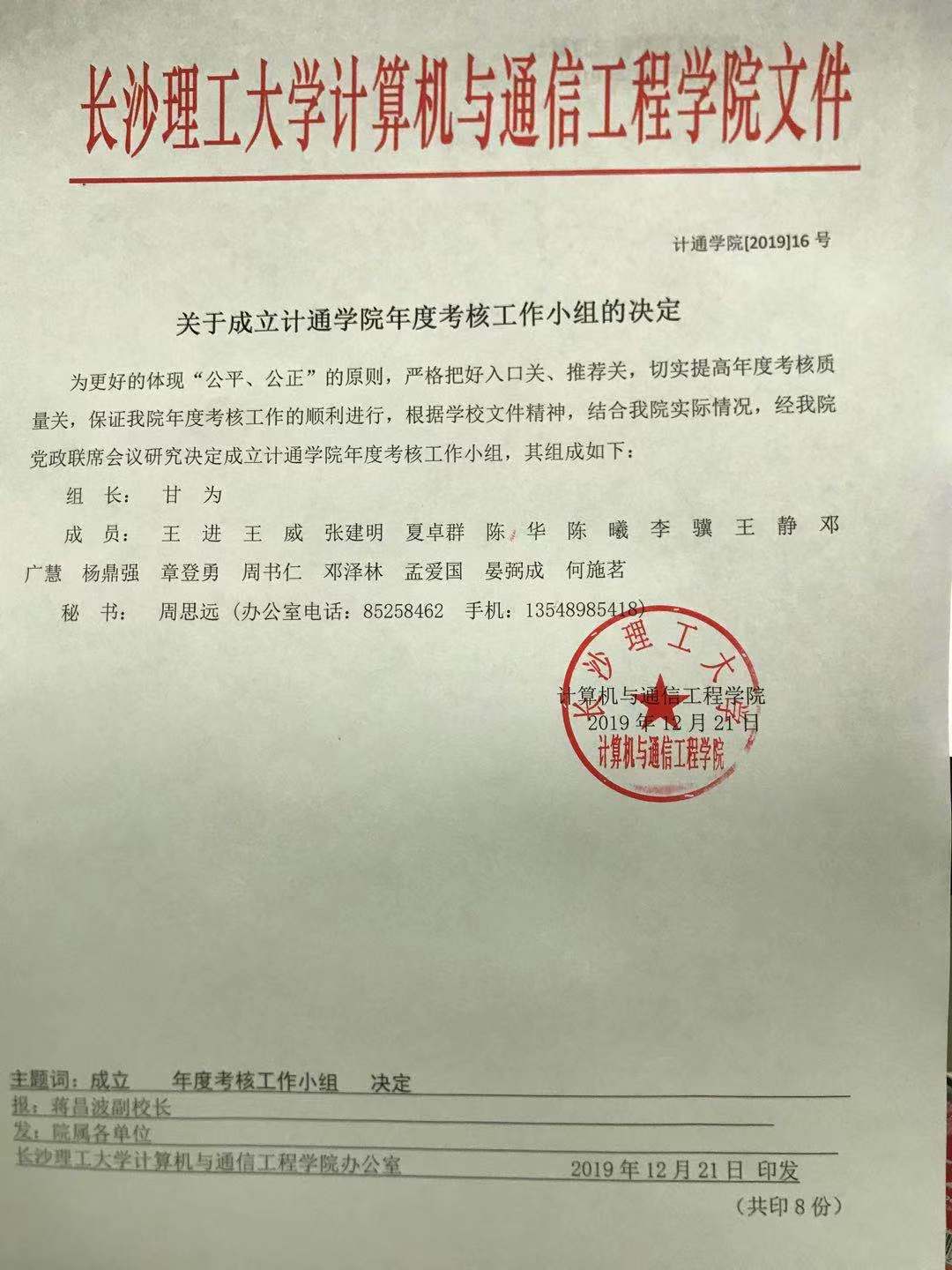 关于成立计通学院年度考核工作小组的决定