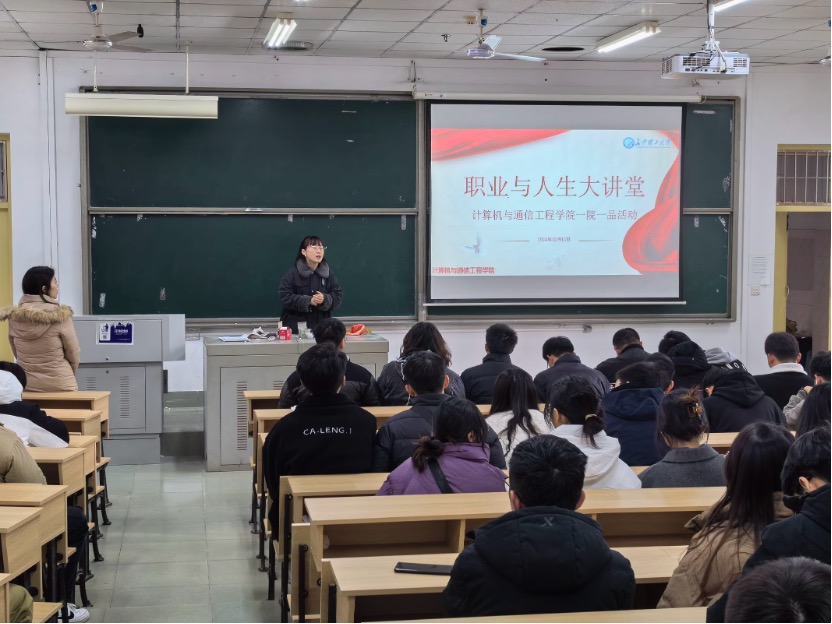 2023年12月12日下午16点,计通学院在电苑楼201举办了一院一品特色活动“职业与人生大讲堂之就业”主题讲座,经管学院辅导员杨舒文应邀主讲,计通学院辅导员易亭亭主持,我院全体研二同学参加。
