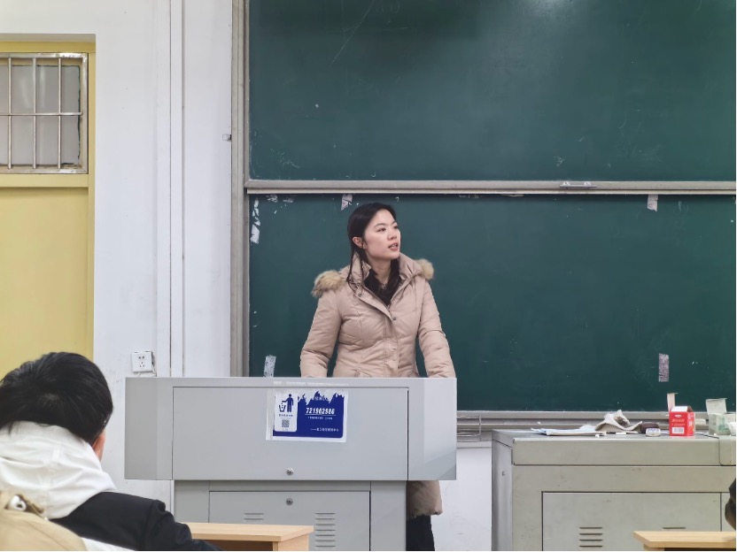 杨舒文辅导员首先向同学们简单的介绍了一下自己,以自己的华为实习经历作为开场,为同学详细说明了华为的招聘流程、体系结构、培训流程、工作内容、工作环境和业余生活等实习经历,让同学们充分的了解的公司的实习内容,并强调实习和项目经历是求职的敲门砖,希望同学们能够利用寒假和暑假来丰富自己的实习经历,查漏补缺,不断丰富自己的简历。