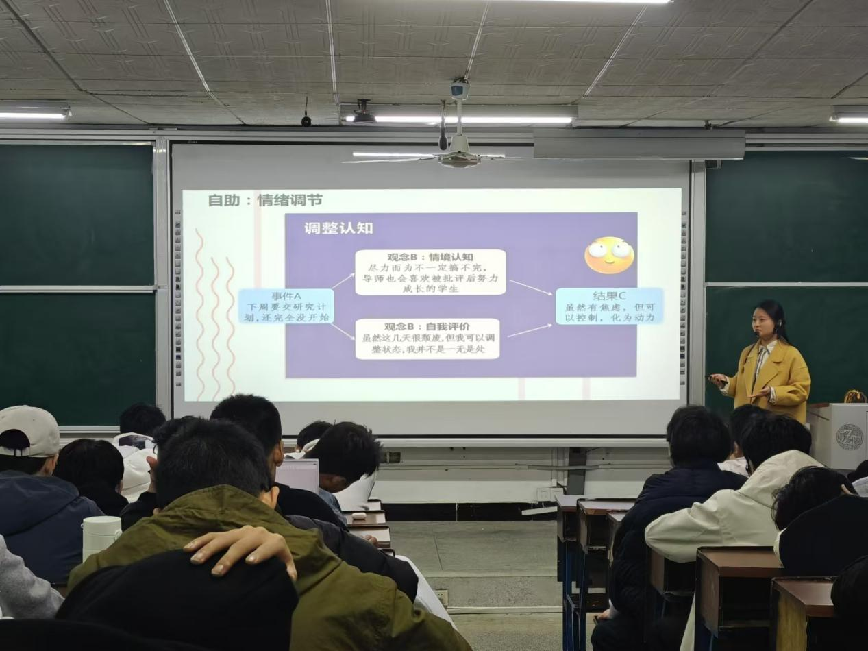 培训会上介绍了常见心理问题和精神障碍类别典型症状以及应对处理办法,传授了情绪ABC调适理论,推荐了心理成长类书籍、电影,普及了心理援助资源,如心理咨询中心和精神科门诊等,教会同学们科学认识心理问题,掌握心理保健知识,正确对待心理疾病,培养阳光积极的心态。