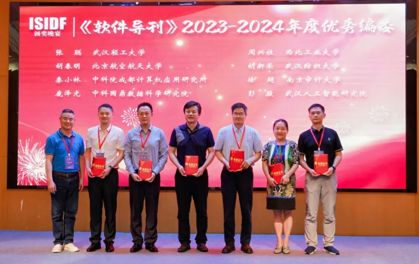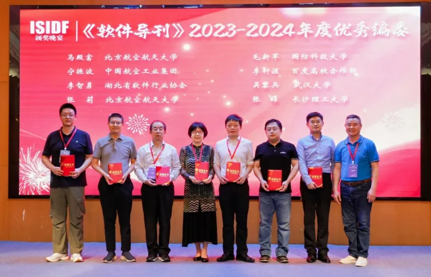 颁奖晚会由湖北省软件行业协会秘书长、大会程序委员会主席李智勇主持,湖北省科技信息研究院党委委员、副院长盛建新作了讲话。《软件导刊》主编、大会主席何炎祥教授,评审委员会主席、《软件导刊》副主任编委吴黎兵教授、毛新军教授分别为2023-2024年度“优秀编委”“优秀审稿人”和“高影响力论文”获奖代表颁奖。大会主席宁振波研究员为大会合作单位颁发感谢状。