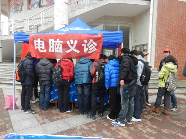 为了贯彻落实党的十八大精神,传承雷锋精神,弘扬计通文化,12月12日,上午11时计通学院“IT精灵”电脑义务维修队在校甘怡园前坪顺利开展了为人民服务活动—电脑义务维修活动。