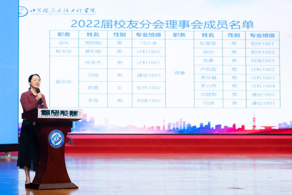 会议伊始,会场播放了“时光记忆”暖场视频,播放同学们在william威廉中文官网的青春岁月。随后,王静琦致辞,介绍了学校校友广大的覆盖面以及深厚的情感联系,表达了对学院校友分会的温暖祝福与美好祝愿。孔伟红《宣读计通学院2022届校友分会成立通知》,并表达了对分会蓬勃发展的期许和对全体毕业生的温暖祝福。紧接着进行了授旗仪式及出征宣誓,校友分会全体联络员上台接旗,王静琦进行授旗,分会秘书蒋利杨带领全体同学进行宣誓。校友分会会长周明韬发言,他发出两点倡议,一是铭记学校文化,秉承学院精神,不断提升自我;二是加强与校友会的沟通与联系,为母校的发展献计献策。张锦宣读了《计算机与通信工程学院关于表彰周明韬等优秀毕业生的通报》文件,随后大会为获得毕业生先进个人的优秀同学颁奖,全体领导老师上台为毕业学生送上了祝福。会议最后进行毕业教育,郑国义着重强调了安全问题。