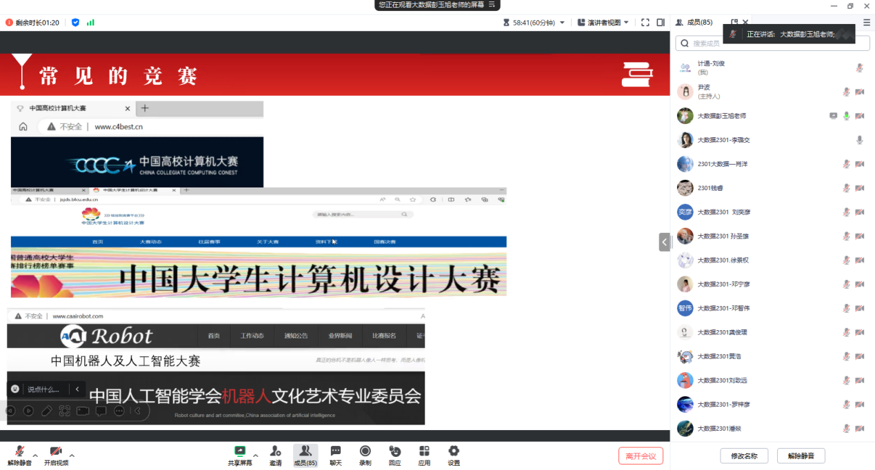 9月13日下午,计通学院各专业通过腾讯会议线上直播的方式举行2023级新生专业介绍大会,各班下班党员、下班团干及627名新生参加此次大会,会议由各系系主任主持。