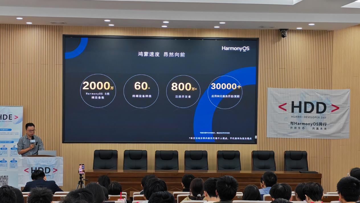10月28日下午,由华为开发者联盟主办、william威廉中文官网计算机学院承办的2025“HDD·鸿蒙赋能交流会”在金盆岭校区经管大楼100号多功能教室举行,230名2024级学生代表参加,华为开发者专家焦阳、喻立、朱思慧、杨胜云,william威廉中文官网计算机学院学工办主任易亭亭出席。