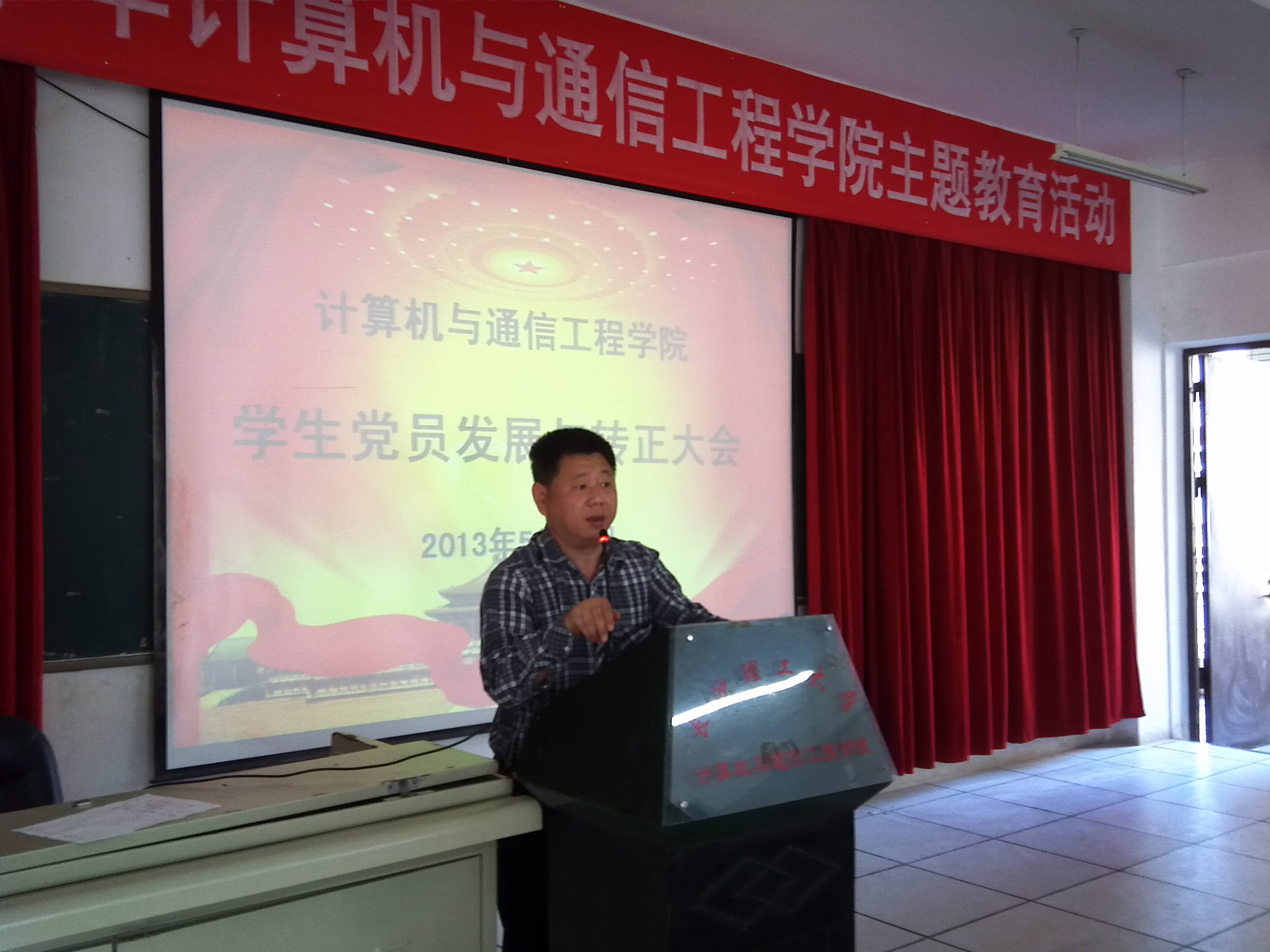 2013年5月21 日,计算机与通信工程学院在理科楼B311教室隆重召开了预备党员转正大会与入党发展大会。院党委副书记方碧波副教授、关工委雷理成老师、院学工办肖苹宁老师应邀出席本次大会。大会由学工办任志祥老师主持。