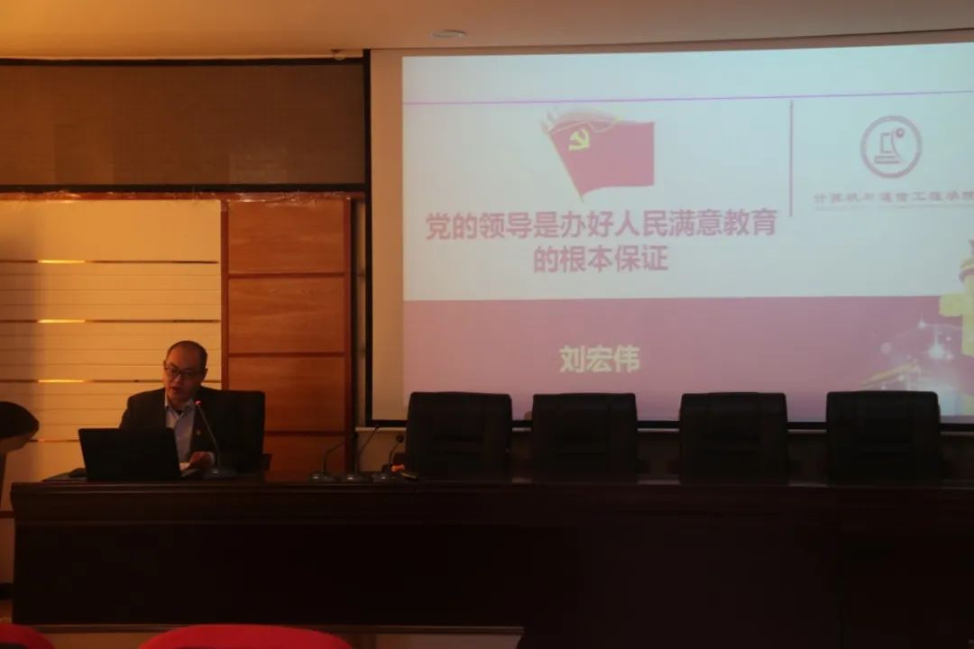 11月10日下午,计通学院党委书记刘宏伟在理科楼B311以“党的领导是办好人民满意教育的根本保证”为题为计通学院全体教工党员和全体学生党支部书记、支委学生代表上了一堂生动的党课。