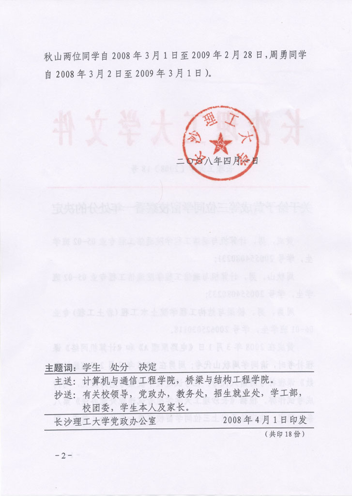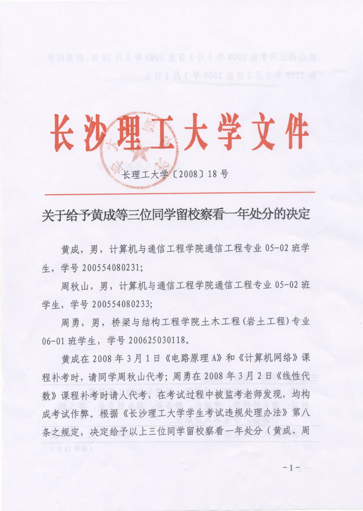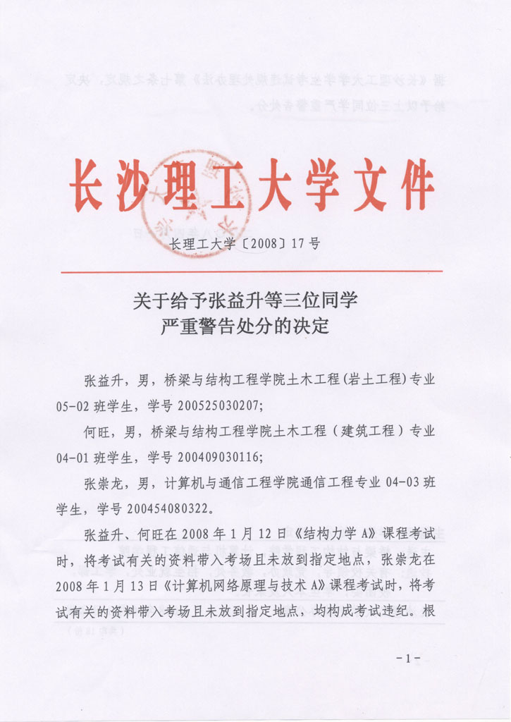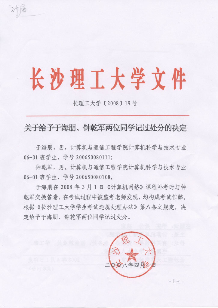 学生违纪处理通知