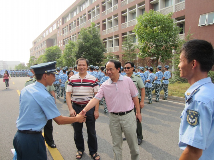 院领导看望了参训学生,并观看了参训学生的列队训练,勉励全体参训学生要克服困难,刻苦训练,服从命令听指挥,以人民军队官兵为榜样,努力完成军训任务,上好自己的大学生活第一堂课,为今后的学习和生活打牢基础。