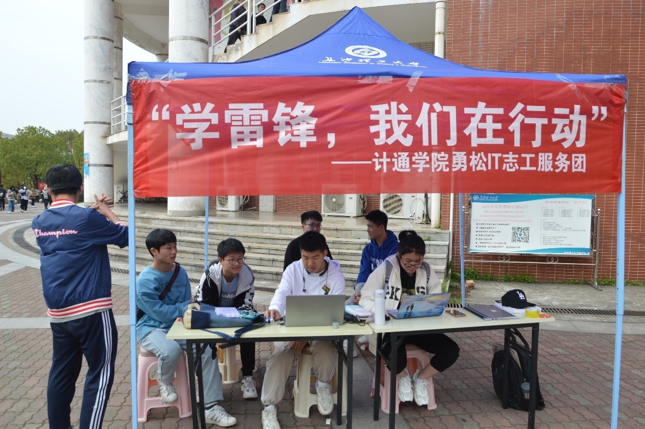 为响应雷锋月活动号召,做好雷锋家乡青年学雷锋工作,帮助广大同学解决实际问题,3月12日,计通学院勇松IT志工服务团义务维修队在云塘校区甘怡园前坪开展“学雷锋,我们在行动”主题团日活动。