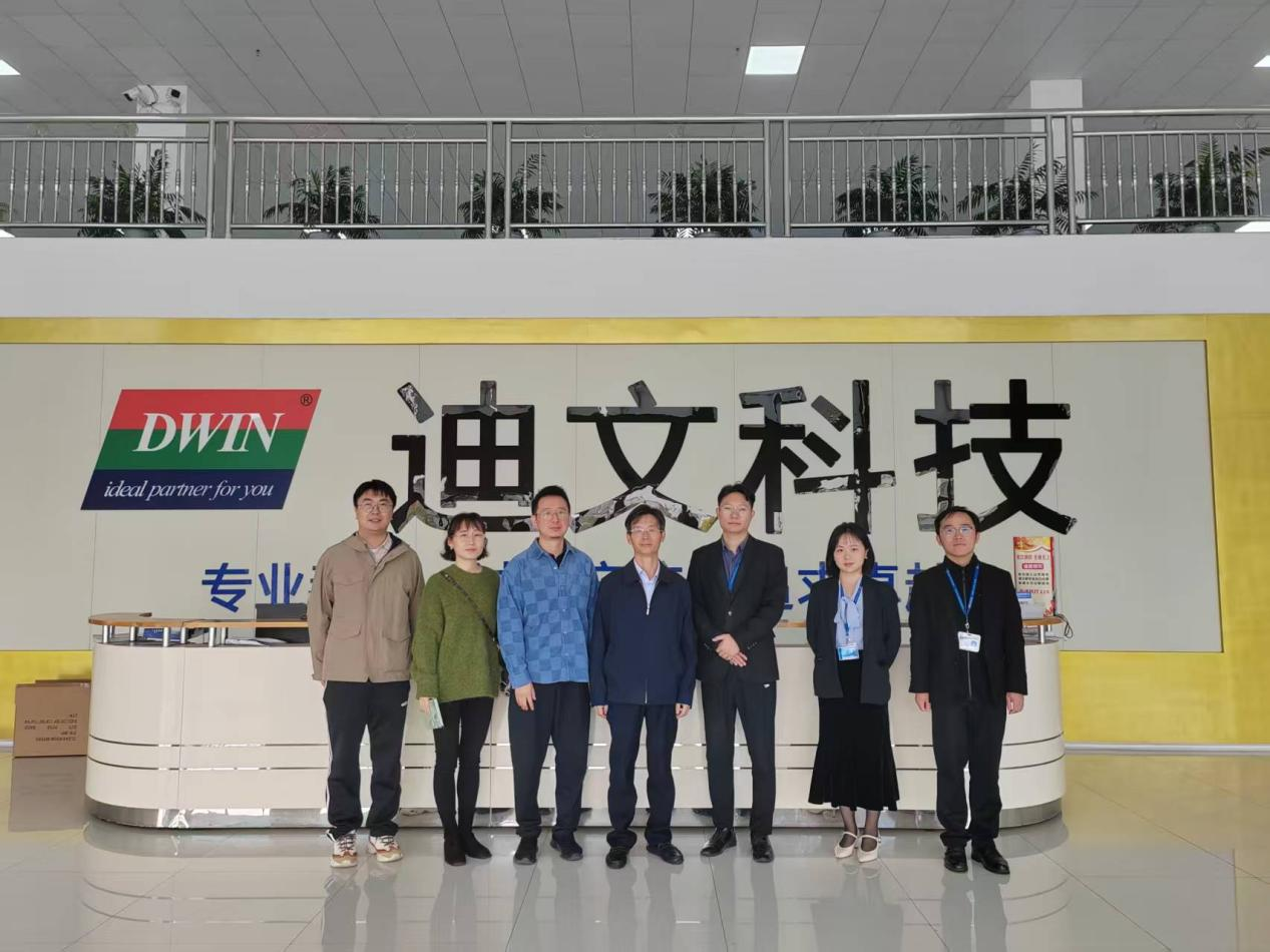 在迪文科技市场部经理莫炎的陪同下,学院一行首先参观了企业展厅。通过讲解与互动演示,考察团深入了解了迪文科技的发展历程、核心产品、技术优势及市场布局,现场体验了其在人机交互、智能终端等领域的创新成果。