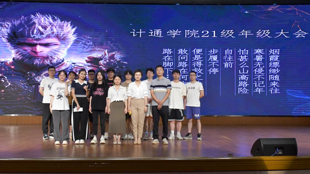 9月11日晚,计通学院在金盆岭五教报告厅召开21级年级大会暨毕业生心理健康促进会。21级辅导员潘枝花主持,党委副书记王觊婧和21级辅导员郑国义出席。
