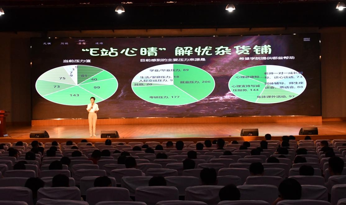 “逢缘”篇章中,潘枝花启示同学们学会把握身边的资源,建立和维护好自己的社会支持系统,珍惜生命中的“贵人”,并将人生的际遇视作成长的财富,不害怕失败,勇敢面对未来。她为同学们开展了“E站心晴”解忧站的团体辅导,科普了精神医学知识,帮助大家正视心理问题,消解对精神疾病及时求助的疑虑。同时,推介了学校的心理咨询和学院成长辅导的渠道,介绍了医学援助资源。