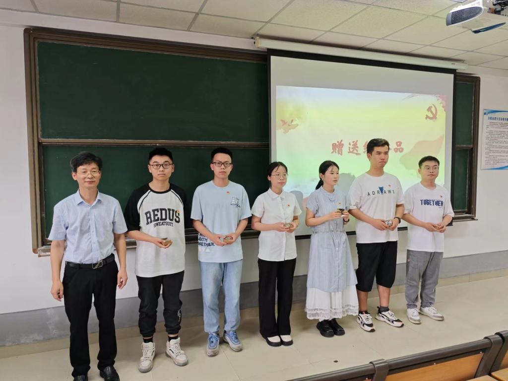 活动伊始,学生党员黄郑钦带领全体毕业生党员重温入党誓词,铿锵有力的誓词回荡在会场,激励着每一位毕业生党员始终不忘初心、牢记使命,继续为党和人民的事业奋斗终身。学生党员李道昱、曹文彪分享了各自的求学感悟以及对未来的展望,并为全体毕业生党员送上毕业祝福。接着,由蔡立新和刘朝辉为学院毕业生党员代表颁发政治生日徽章,庆祝每一位毕业生党员同志的“政治生日”,回望来路,重温誓言,再启新程。下一环节,大家观看了全院师生们为毕业生党员准备的祝福视频,同时在明信片上写下了心中想要对学院诉说的期盼与美好祝愿。最后,刘朝辉为毕业生党员上了最后一节党课,叮嘱同学们“学,然后知不足”,即使离开学校也要保持一颗学习的心;“越是艰险越向前”,踏平坎坷再出发。同时要坚持终身学习的理念,锻造为国为民的能力本领,实现专业报国。