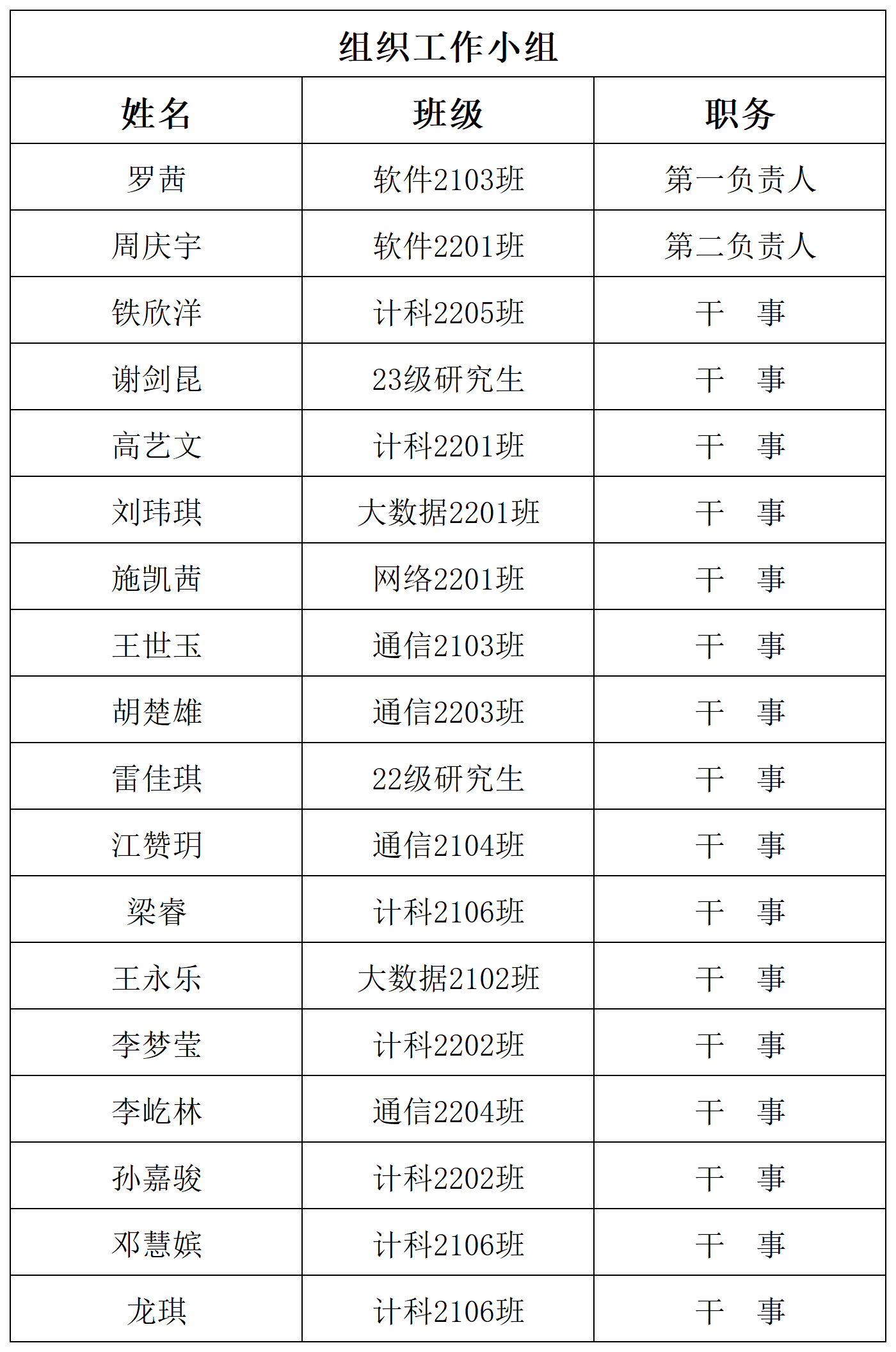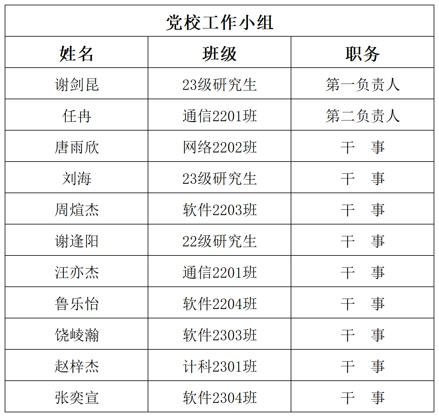 为进一步加强基层党组织建设,夯实基层党支部“五化”建设,加强学生党员的教育管理,充分发挥基层党支部的战斗堡垒作用与学生党员的先锋示范作用,经学生党总支讨论,报请院党委审批,将2024-2025学年学生党务小组成员名单公示如下: