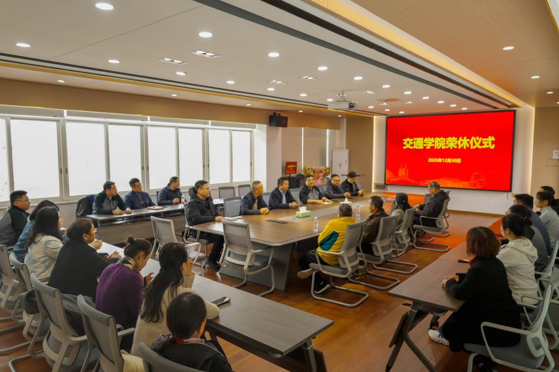 岁月如歌,致敬芳华。2025年12月30日,交通学院在工二B413会议室为李闯民、罗毅、何祎、朱陶业、赵朝晖等五位教职工举行荣休仪式。学院领导班子成员、相关系室主任、党支部书记及全体行政人员参加。党委书记成华主持仪式。