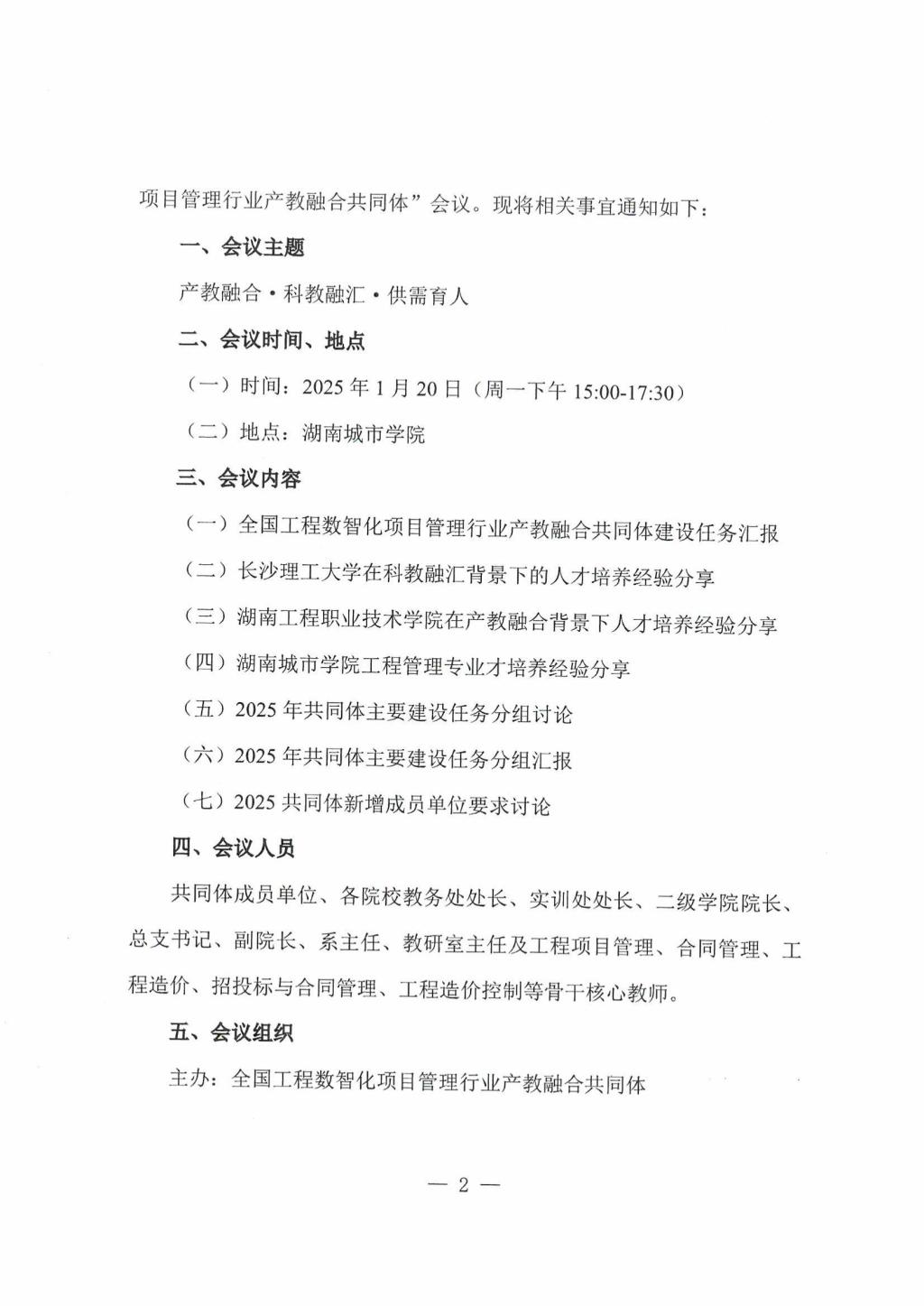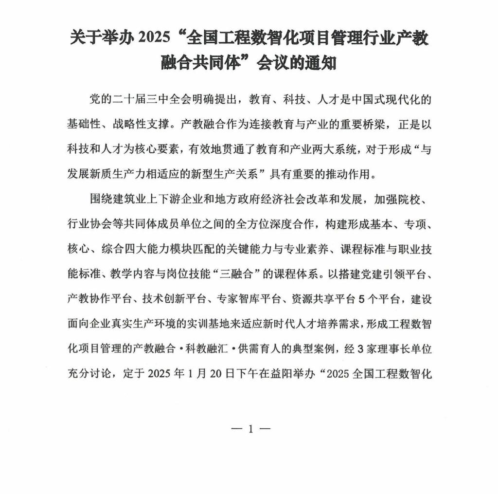 关于举办2025“全国工程数智化项目管理行业产教融合共同体”会议的通知
