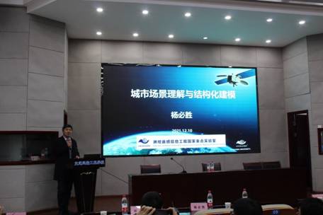 接着,杨必胜教授带来题为“城市场景理解与结构化建模”的学术报告,杨教授从精准刻画城市立体空间的重大需求出发,分析了城市场景理解与结构化建模面临的三大挑战,重点介绍了其在城市场景空间化、语义化、对象化与结构化建模方面的研究成果,最后,杨教授还介绍了相关团队研究成果服务于新型基础测绘、城市清洁能源利用的科学决策应用。