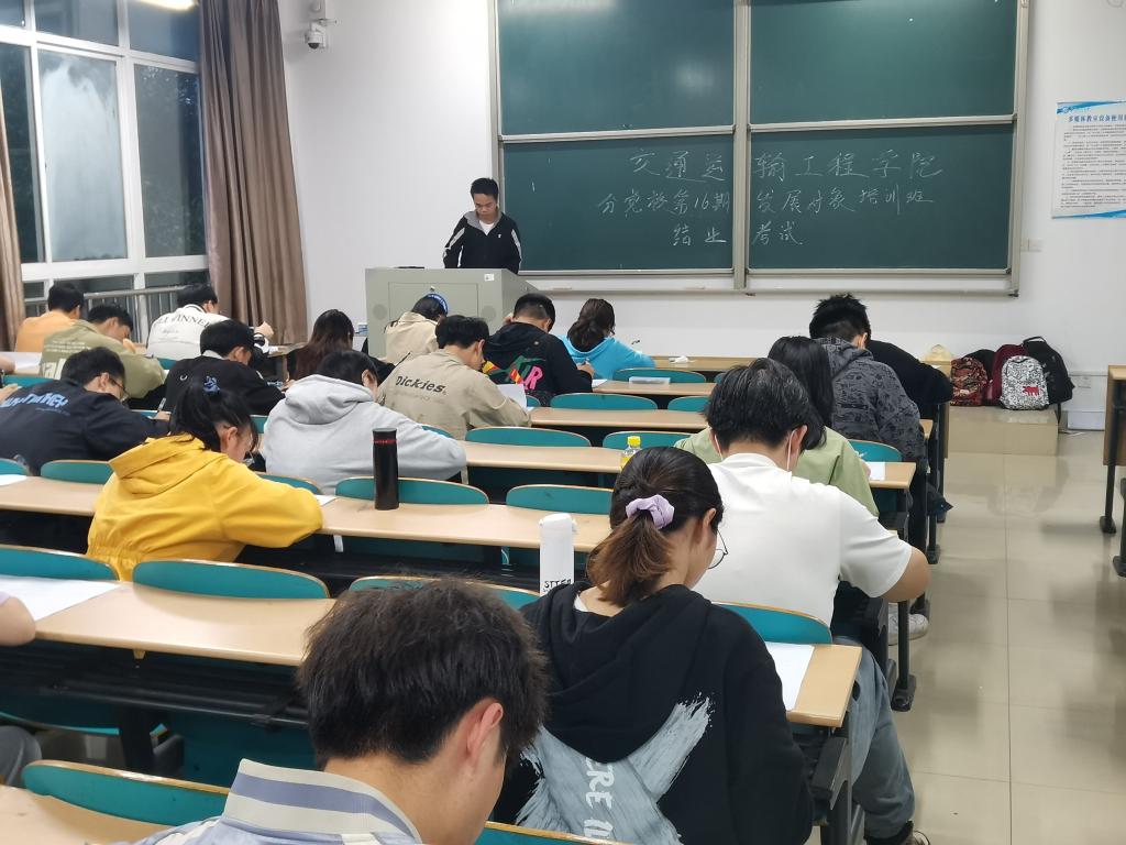 5月13日晚,交通学院分党校于工三A213、A214、A216、A217举行第二十五期预备党员、第十六期发展对象培训班结业考试,培训班全体学员参加。