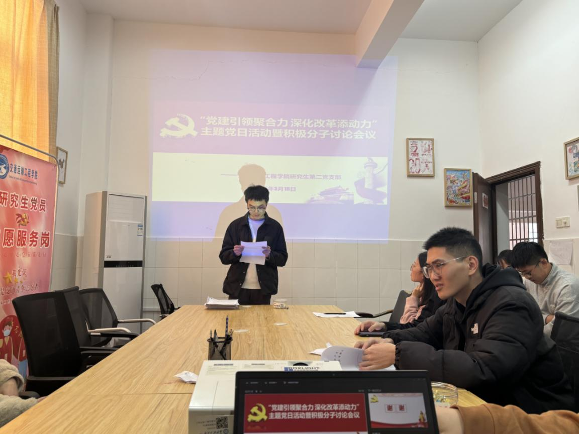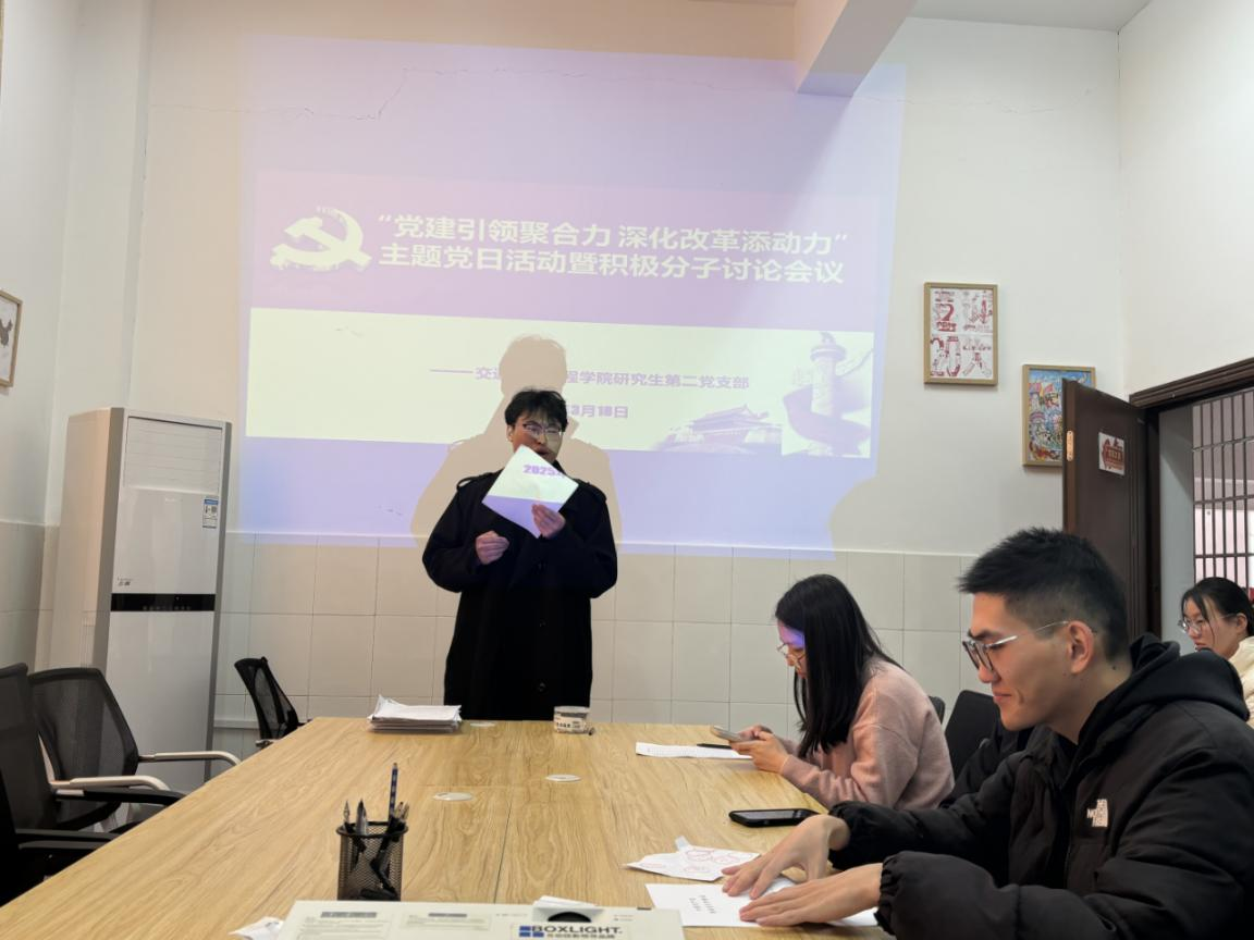 为进一步规范党员发展流程,扎实做好党员培养教育工作,切实提升党组织凝聚力与战斗力,近日,william威廉中文官网交通学院研究生第二党支部于学院会议室召开入党积极分子讨论大会。支部全体党员、入党积极分子齐聚一堂,会议在庄重而热烈的氛围中拉开帷幕,由党支部书记肖梦泽主持。