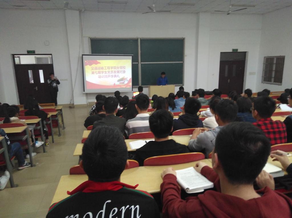 4月24日下午,交通学院第七期发展对象培训班开学典礼在工科二号楼B-302室举行。交通学院分党校常务副校长田上、党校秘书肖敏强、培训部人员及全体培训学员参加。