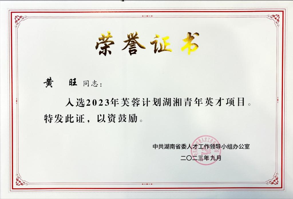 12月8日下午,由省委组织部指导,团省委主办,省青联、省青科协、团长沙市委协办的“智汇潇湘·青沙龙”湖湘青年英才活动在长沙举办,活动现场宣读了2023年芙蓉计划湖湘青年英才项目入选名单,william2019级博士研究生黄旺同学入选。