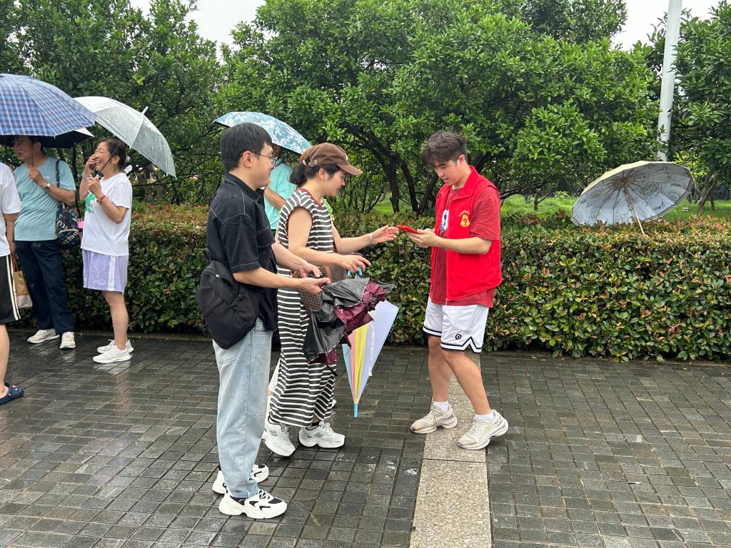 天刚破晓,在活动负责人陈凤清等六人的带领下,志愿者们穿上景区分发的红色马甲去到橘子洲的各个景点,积极地为游客提供信息咨询、路线指引服务,并对踩踏草坪等不文明行为进行友善劝导。他们耐心解答游客问题,积极认真,热情饱满地完成了各自的工作,用志愿红为橘子洲添上一道靓丽风景线。