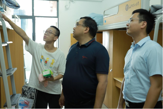 9月14日下午,学院全体领导走进新生宿舍,走访看望新同学,为刚进入大学校园的新生们送去贴心关怀与美好祝愿。关工委副主任吴滨、新生辅导员参加。