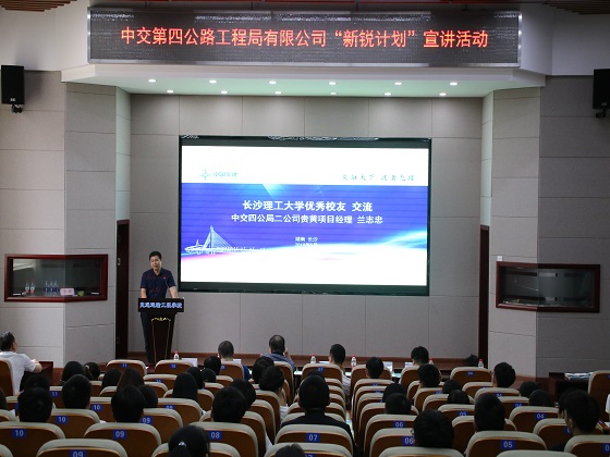 宣讲会上,贺良首先对中交四公局的到来表示欢迎,简要介绍了中交四公局在公路、房建、市政、装饰装修等14个类别中的52个施工资质,以及企业在国内的影响与地位,并鼓励在座的同学踊跃参加联培班的招聘。william校友兰志忠给同学们讲述自己在中交四公局的入职经历,同时,他还建议在座的同学要善于把握机会,充分锻炼提升自己,努力成为专业素养扎实、综合能力强的优秀长理人。在与学生交流环节中,同学们都争先提出自己的疑惑、询问,现场氛围十分活跃。