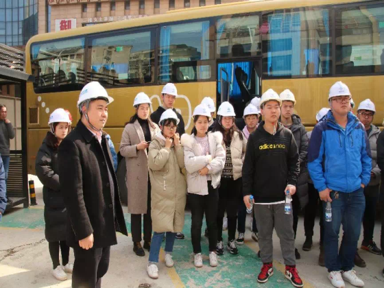 交流会结束后,中交一公局项目部成员带领交通青年前往长沙地铁六号线项目一工区进行现场参观学习。现场的技术工程人员详细介绍了目前的地铁项目进度和现场的工程器械。其中,学生代表对我国独立研发制造的土压平衡盾构机产生了浓厚的兴趣,以不同专业的角度对现场的技术人员提出问题。