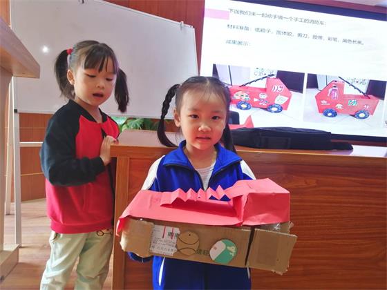 为使孩子们了解消防知识、提高学科兴趣,志愿者程恩浩从火灾种类、预防火灾、火场逃生及正确拨打火警电话四个部分为孩子们普及消防知识,并指导孩子们制作手工消防车,提高孩子们的动手能力。志愿者潘长江用游戏与小礼品结合的方式带领大班孩子们学习英语单词,志愿者蒋诗怡则用酸碱中和实验的教学方法给小班的孩子们上了一堂趣味化学课。
