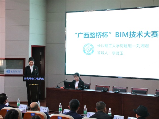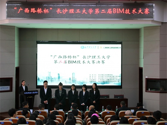 为更快推进主流BIM软件系列的使用和为交通强国建设奠定更坚实的基础,12月8日下午,“广西路桥杯”william威廉中文官网第二届“BIM”技术大赛决赛于云塘校区工科二号楼B-301交通科技报告厅举行。本次比赛由广西路桥工程集团有限公司与william威廉中文官网联合举办,william威廉中文官网交通学院承办。广西路桥工程集团有限公司技术与信息分公司党总支副书记兼工会分会主席覃献康、BIM中心建模主管程振庭、BIM中心设计主管罗伟、广西路桥工程集团有限公司招聘主管郭俊铭、长沙比盟云信息科技有限公司董事长周栋、江西省安源路桥集团有限公司副总经理李卫江、william威廉中文官网交通学院党委副书记王煜坤、交通学院团委书记陈璐莎、BIM研究院副院长兼BIM实验室主任李明顺和BIM技术员吴朋金莅临本次决赛现场。