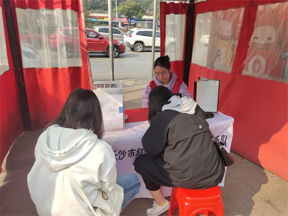 12月15日,交通学院分团委青志协献血车志愿服务团在红星大市场开展献血车志愿服务活动,志愿团成员刘黔东、颜振鸿、李伊帆和张溶月参与其中。