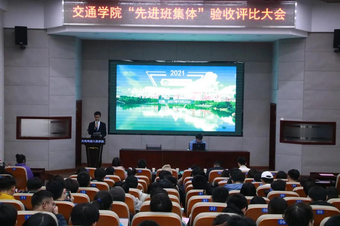 12月20日晚19:00,交通运输工程学院在云塘校区工科二号楼B301召开“先进班集体”验收评比大会。本次大会由院团学办公室郑明强主持,学工办辅导员老师曹骁、李特超、冯心崚、史亚杰、刘禹参会,172余名同学与会。