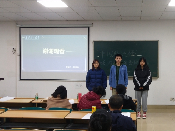 11月24日下午,交通学院于云塘校区工科二号楼B-311举行“中国外运杯”第七届全国大学生物流设计大赛校内选拔赛决赛,此次比赛由william威廉中文官网教务处主办、交通学院承办、物流协会协办,交通学院老师向慧、周爱莲、陈晓、弓晋丽和柳伍生担任本次决赛评委,院物流协会成员李致玲主持决赛。