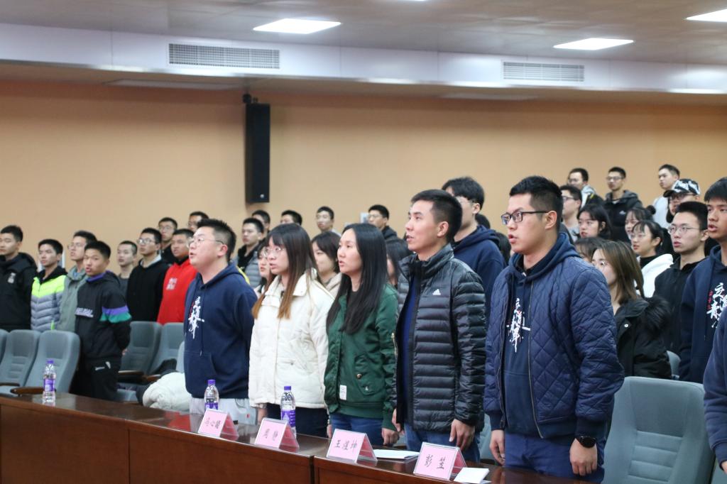 首先,全体人员起立合唱团歌。随后,彭笠为2020级学生干部们致辞,提出三点要求:第一要树立远大理想,第二要热爱科学,追求真理,第三要积极进取,乐观自信,并对2020级学生干部们表达了美好的希望与祝愿。
