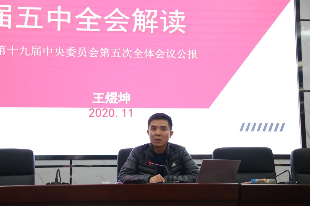 致辞结束后,王煜坤以“党的十九届五中全会精神解读”为主题开展青马班第一课。在授课过程中,王煜坤根据中国共产党第十九届中央委员会第五次会议,结合党的十九届五中全会指导思想,展示了决胜全面建成小康社会所取得的成就,同时提出了目前国家所面临的机遇和挑战,鼓励同学们要加强对马克思主义、对党的理论学习,做到知行合一,在实践中检验理论,最后希望学生干部们可以起到示范引领作用,在同学们中发挥领导力,凝聚力,号召力。