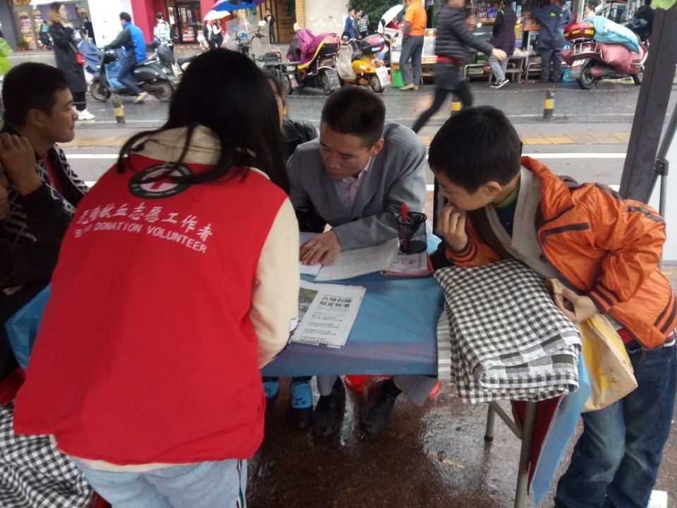 农民工坚持无偿献血 交通学院献血车志愿者深受触动