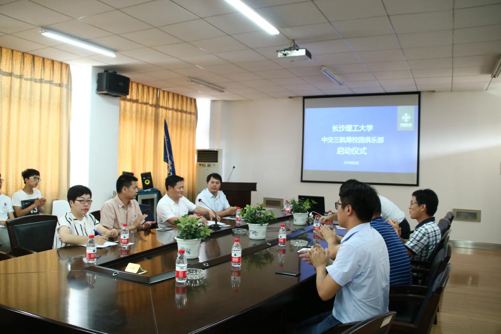 6月21日下午,william威廉中文官网&中交三航局校园俱乐部启动仪式在工二B-413举行。莅临本次活动的嘉宾有中交三航局人力资源部副总经理王传海、交通学院党委书记胡庆国、中交三航湖南分公司总工程师张志玉、人力资源部主管费佳颖、招生就业处副处长贺良,启动仪式由交通学院党委副书记田上主持。