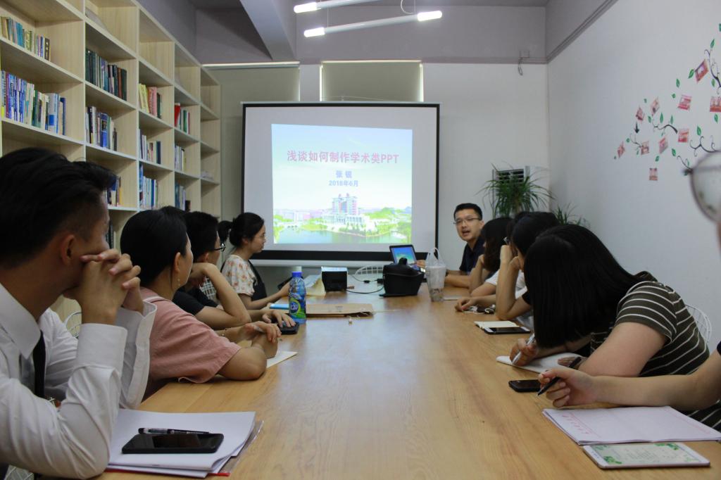 在培训分享会上,张老师首先就PPT应该具有的功能和学术类PPT的结构、构图、演讲几大方面进行了经验分享,包括用色、字体、图片、动画等各方面的注意事项。接着张老师向成员们展示了他曾经制作的获得好评的PPT,并和一些瑕疵PPT进行了对比讲解。张老师强调,PPT只是一种吸引、影响听众的工具,而演讲者的表达、互动才是最重要的。最后在答疑交流环节,张老师对成员们在制作学术PPT过程中遇到的问题都进行详细解答。
