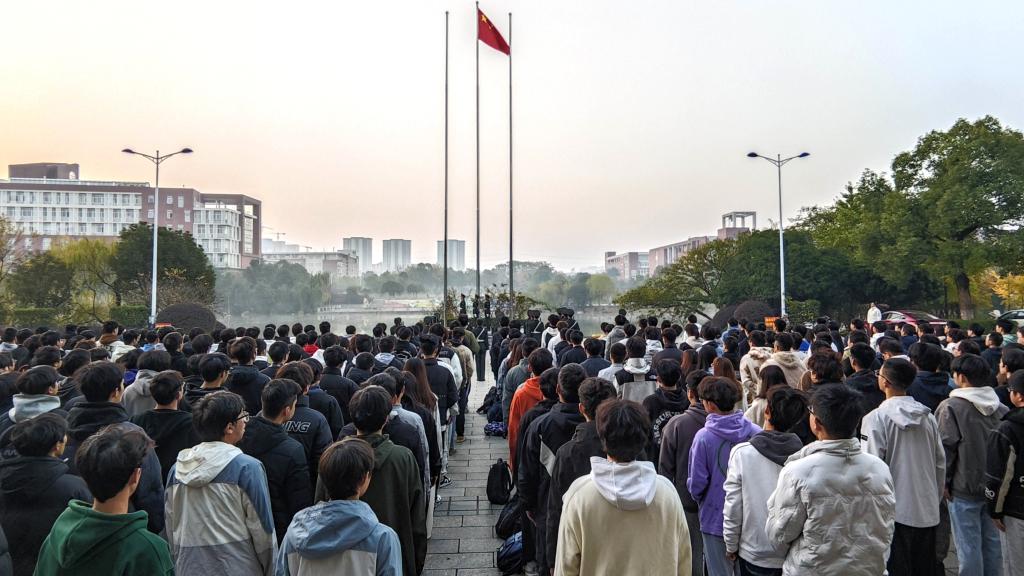11月27日清晨,交通学院于云塘校区图书馆前坪举行升旗仪式,交通学院党委副书记涂道勇、交通学院全体辅导员老师及2022级道桥渡、测绘、遥感专业全体学生共计400余人参加。