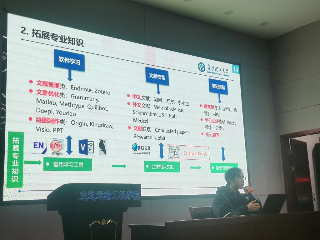 论坛伊始,谢娜斯以“论文写作经验”为主题,分享了她从确定思路、论文撰写到投稿见刊全过程的经验,详细介绍了几类常用学习软件的下载与使用方法,并指出熟练使用各类软件是提高科研效率的关键。最后,谢娜斯向同学们推荐了一些高质量期刊和文献查阅网站,为广大同学寻找学术资源提供了有力的支持。