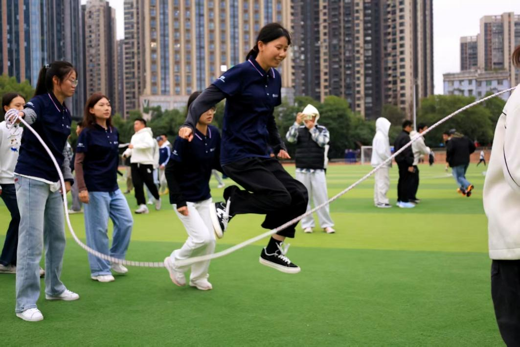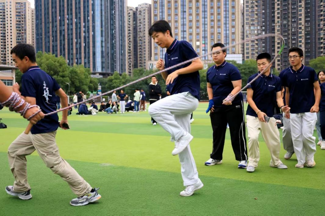 10月21日下午,交通学院于金盆岭校区举行“跃动长绳,逐梦赛场”集体长绳比赛,2025级全体班级参加比赛,2025级辅导员李乐天到场为选手加油鼓劲。