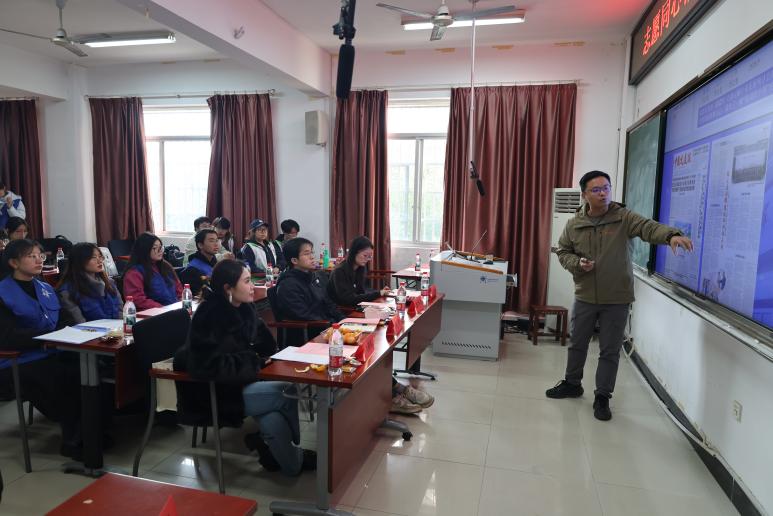活动伊始,各志愿服务团队的指导老师依次介绍了团队的基本情况与发展历程。william威廉中文官网“大道行远”理论宣讲团注重理论传播与思想引领,“青苗工程师”社会实践团聚焦交通科普与社会实践;中南林业科技大学“清风林语”学生党员志愿服务队强调党员先锋作用与生态服务,“语林同行”多语志愿服务队则发挥语言优势服务社会。各团队特色鲜明、成果丰硕,展现了新时代高校志愿服务的多元面貌。在专题宣讲环节,各团队代表围绕交通强国战略、生态文明建设以及“一带一路”倡议进行了深入分享,宣讲内容既有理论高度,又有聚焦港珠澳大桥、深中通道等大国工程,塞罕坝造林、长江黄河生态保护等实践案例,富有实践温度的宣讲引发了在场师生的广泛共鸣。