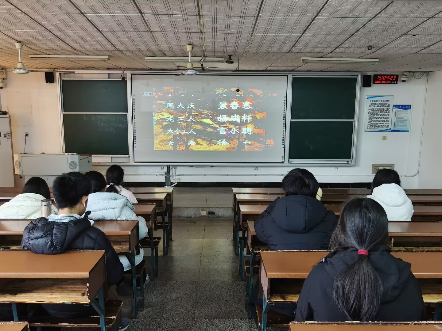 3月15日,教室里放映着1965年的《雷锋》。银幕上,雷锋同志朴素而光辉的形象深入人心:他那只缝缝补补的节约箱,雨夜护送老大娘回家的背影,义务劳动中挥汗如雨的姿态……一幕幕画面无声地传递着信仰与情怀,让在场学子在光影交错中感悟榜样的力量,完成了一次深刻的精神洗礼。